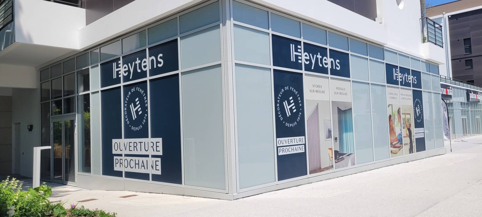 Habillage vitrines en adhésifs microperforés sur magasin HEYTENS à ANGLET